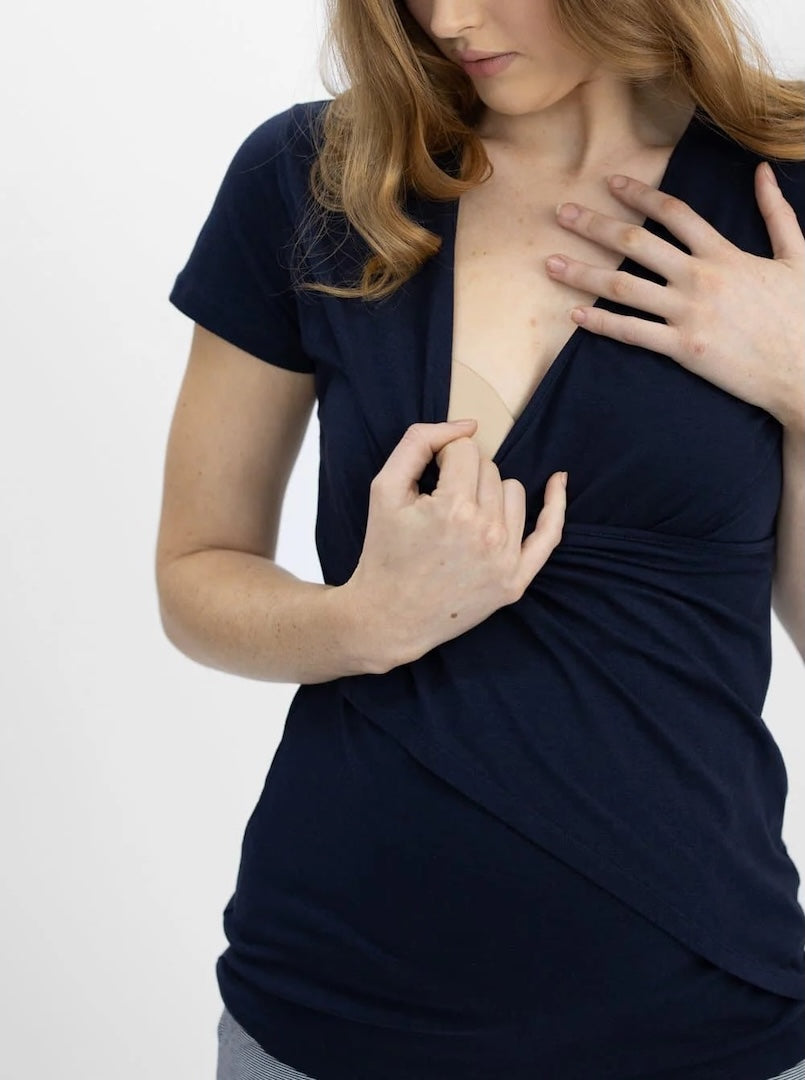 Angel Maternity Crossover Bamboo Nursing Tee Navy