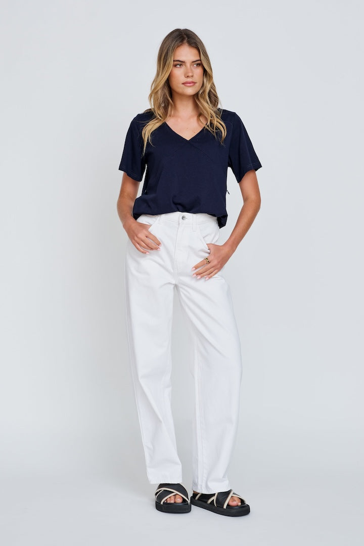 Introducing a new cut to your staple wardrobe, the V-Neck Panel Tee in Navy.