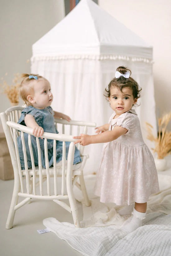 Thoughtfully crafted from 100% certified organic cotton, this dress will be luxiously soft, and gentle on delicate skin. Featuring a soft hand-illustrated floral print over a blush base, this sweet dress is finished with a classic collar, button-down front and gently puffed sleeves for a touch of vintage inspired elegance. Its flowing silhouette allows for easy movement, making it as comfortable as it is beautiful.