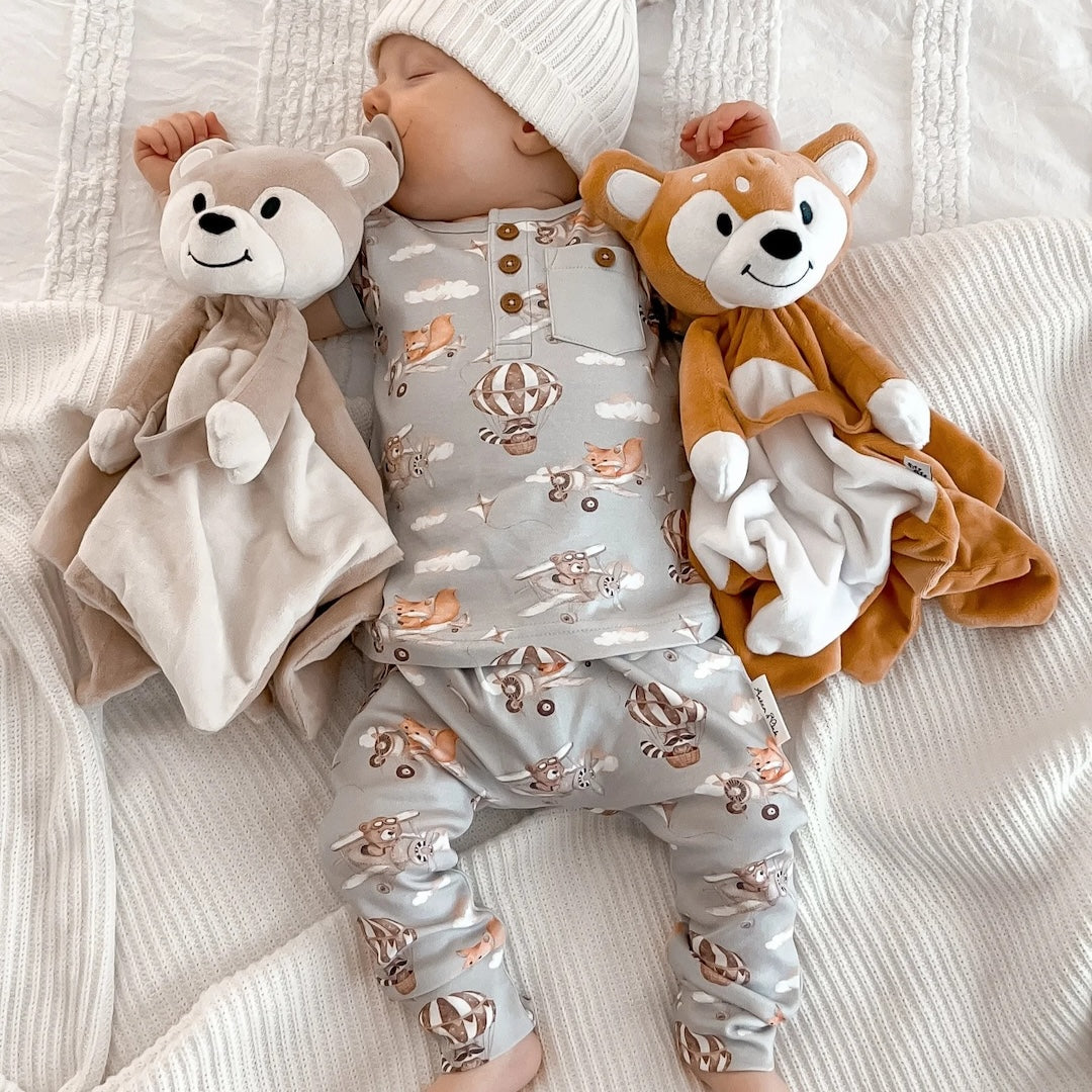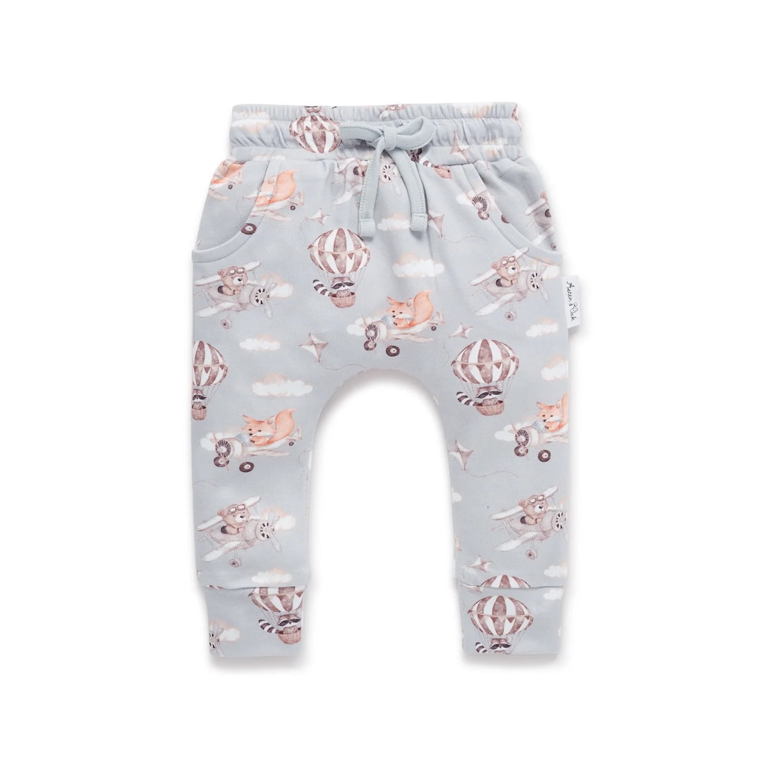 Let imagination soar with our Flying Friends Harem Pants – a playful essential for everyday adventures. Crafted from GOTS certified organic cotton Featuring an all-over print of vintage planes and whimsical hot air balloons piloted by cheerful bears, foxes, and raccoons, these pants are both fun and functional for curious little explorers.
