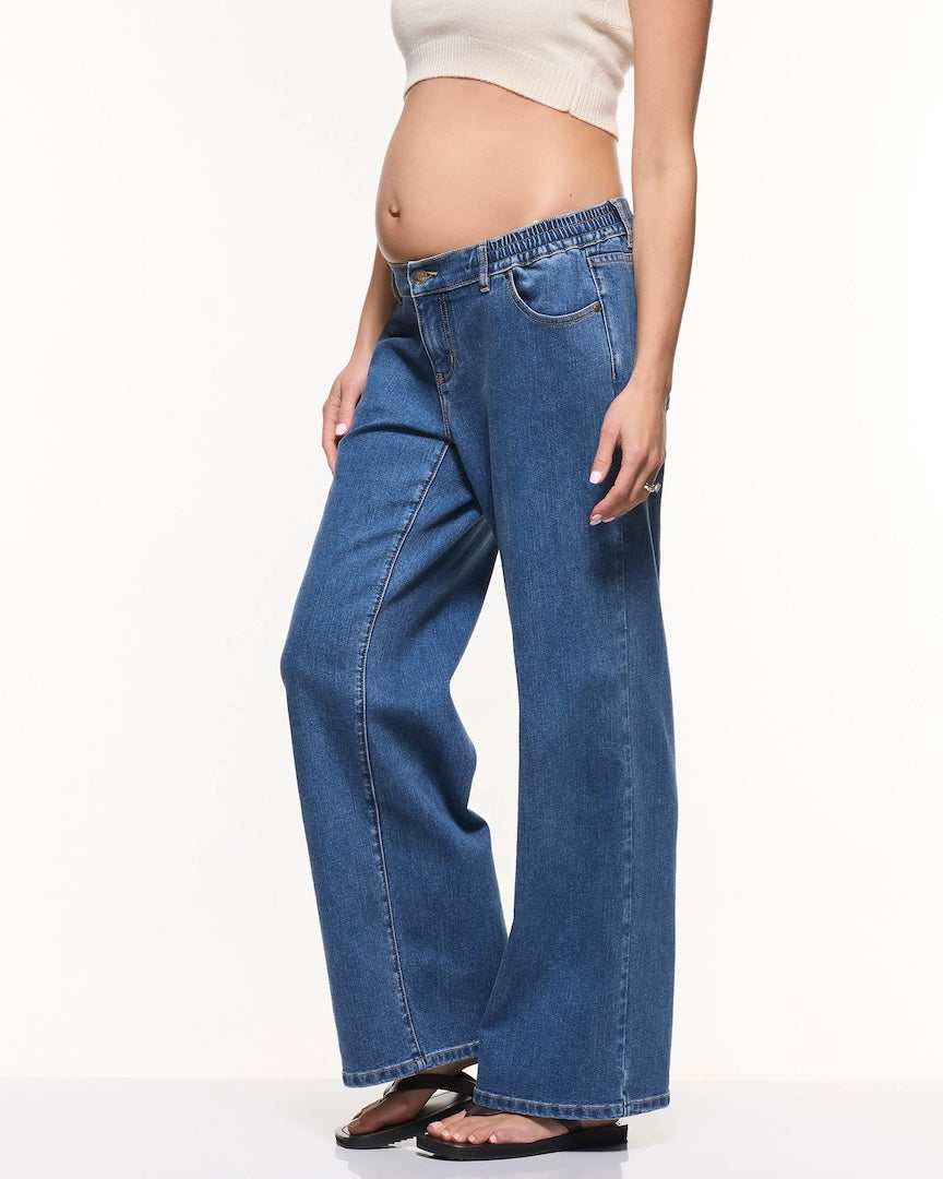 Designed for longevity, the Heaven Straight Jeans are a must in your motherhood wardrobe. With Soon's signature elastic waistband that sits at a comfortable low to mid rise on the belly through all trimesters and well after pregnancy, these jeans have a traditional button and fly and four pocket design and a super flattering wide leg silhouette. The classic blue wash pairs back well with any top and they have just the right amount of stretch.