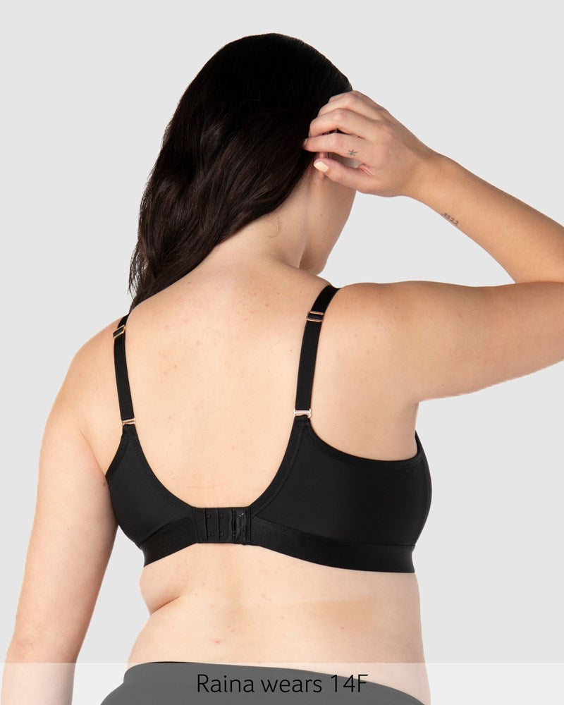The look of a plunge with full cup support and coverage! Smooth support and hidden shaping, the Flawless wirefree nursing bra offers everyday support up to a J cup- ideal for mums who need a little extra.
