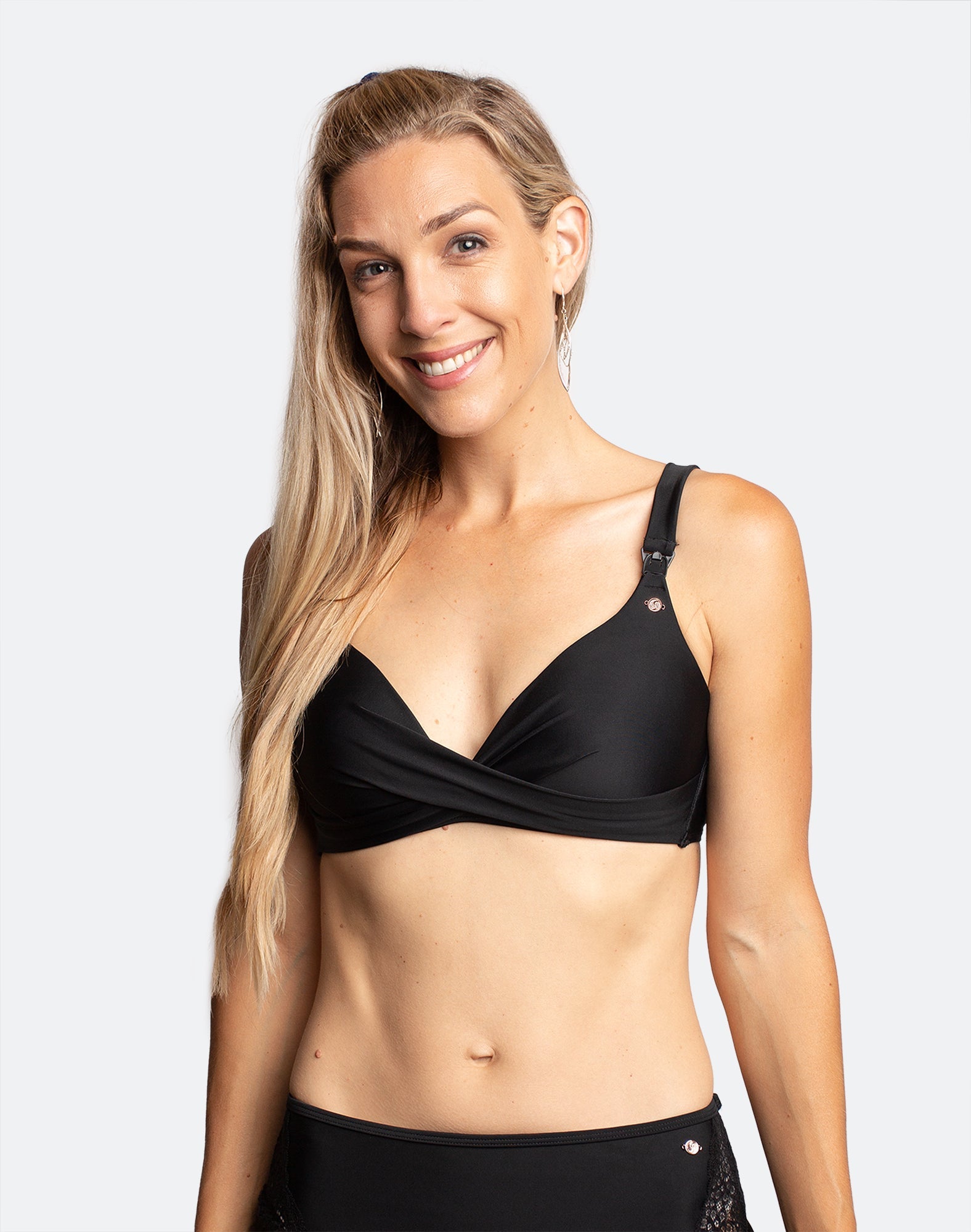 A beautiful sweetheart style nursing bikini top designed for an A-D cup that can be worn while pregnant or breastfeeding. Easy access nursing clips for discreet, hassle free breastfeeding while you’re by the pool, at the beach and having fun in the outdoors with your little one.