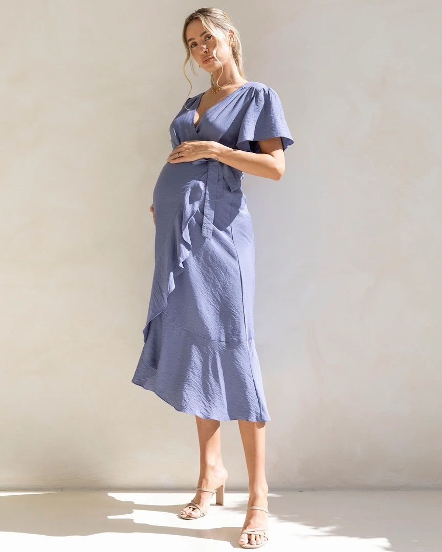 Molly Maternity Wrap Midi Dress In Iris Blue