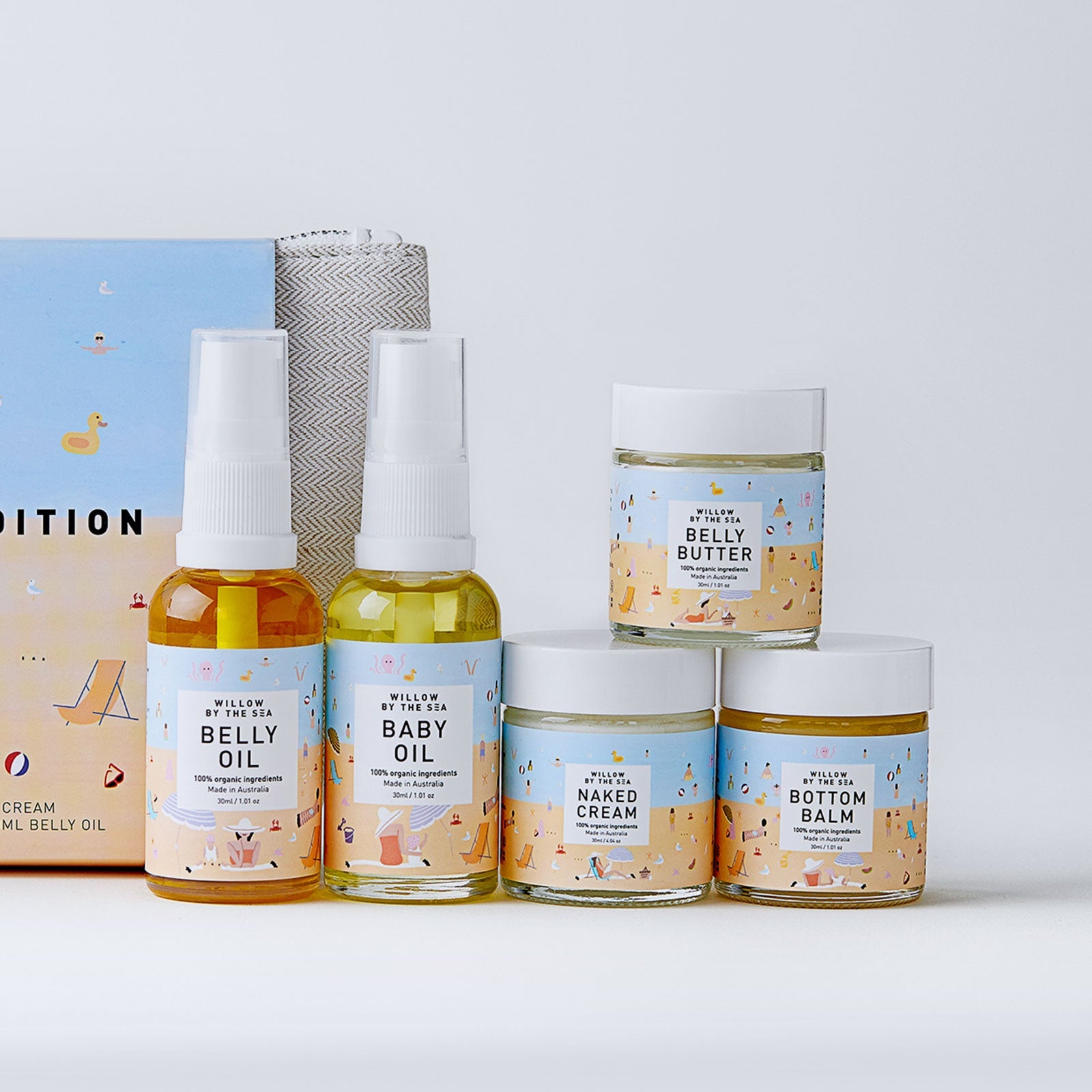 All of the Willow By the Sea best-selling mum and baby products, now in miniature sizes. Perfect for a quick getaway or as a sampler pack.