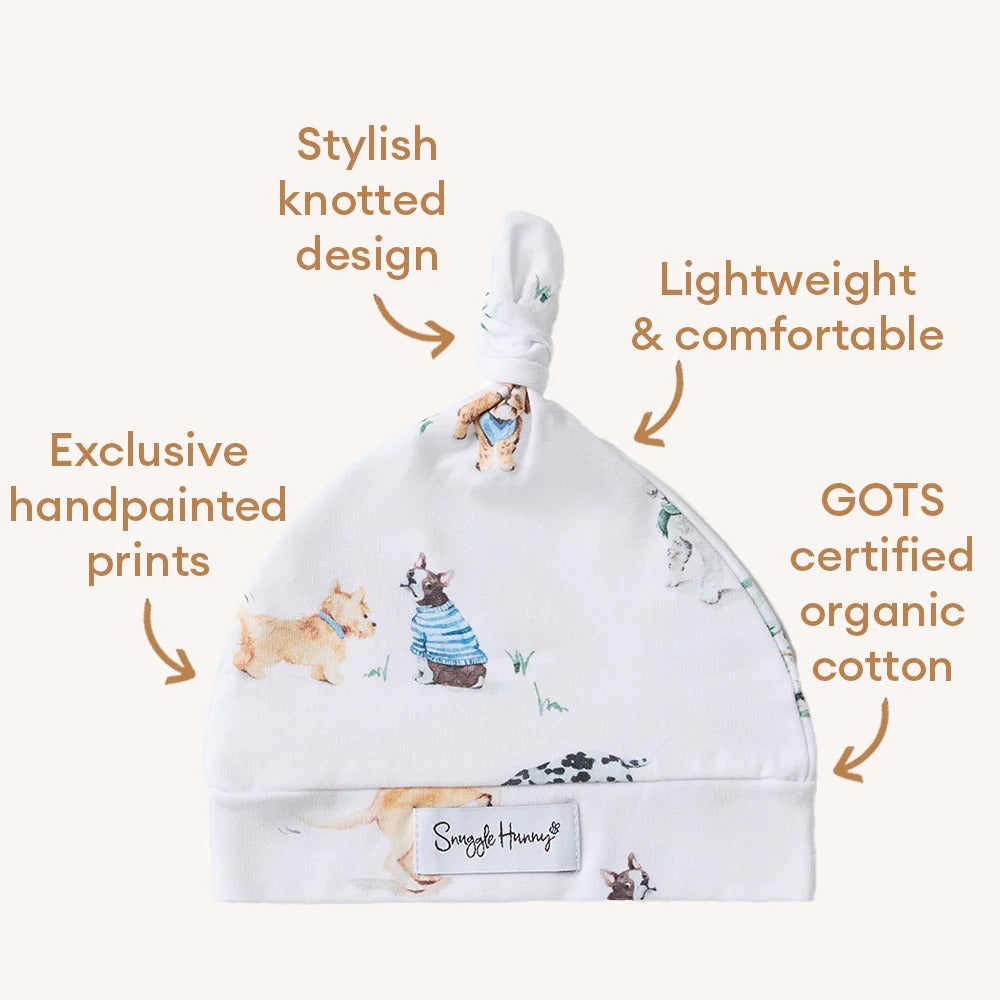 Snuggle Hunny knotted baby beanies are soft and snuggly and made with Certified Organic cotton so you know bub has only the best. For newborns to 6 months old.