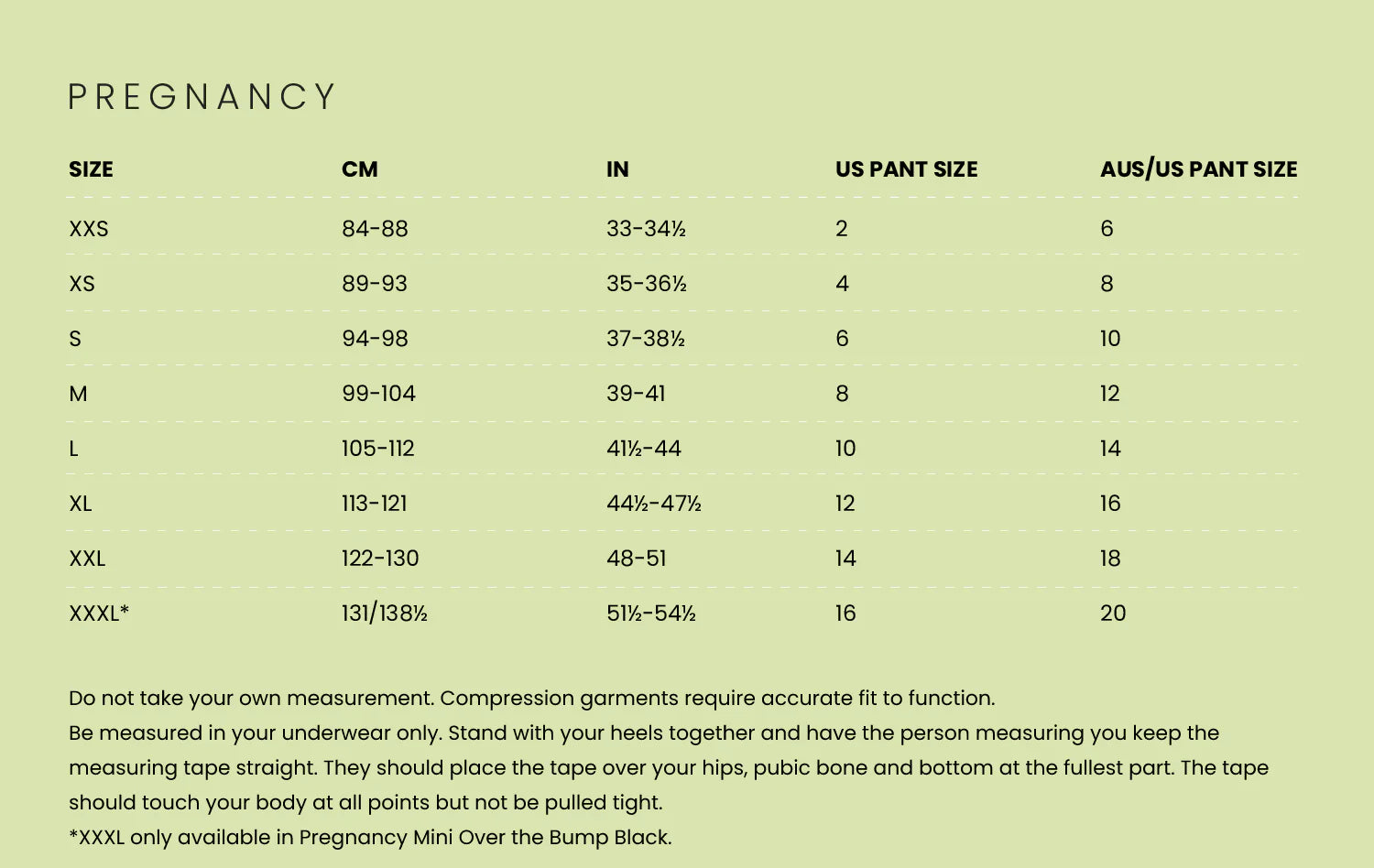 *Please note: SRC Pregnancy leggings have a gentle level of graduated compression in the legs. These are suitable for women with mild varicose veins or swelling. This product will not provide enough compression for moderate or severe varicose veins of the legs. Women often complain that wearing a grade 2 or 3 compression stocking for long periods can be difficult due to them becoming hot and tight. The SRC Leggings were designed with a specific level of compression so that women can wear their compression stockings under the SRC Leggings for a number of hours during the day. Once the compression stockings have been removed the SRC Leggings will continue to provide mild graduated compression so the benefit of having worn the stockings is not lost.