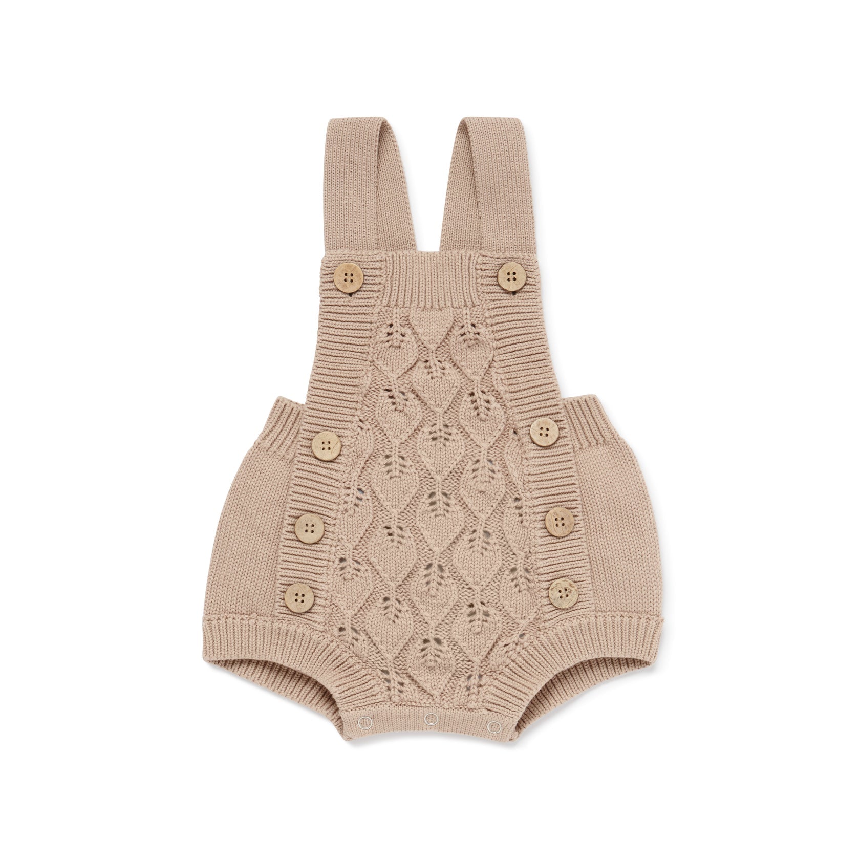 Beautifully handcrafted, the Taupe Leaf Knit Romper has been designed with comfort and play in mind. It is all in the details with the beautiful intricate leaf pattern, wooden buttons and adjustable straps, a timeless piece to be kept as a keepsake or passed down through the family.