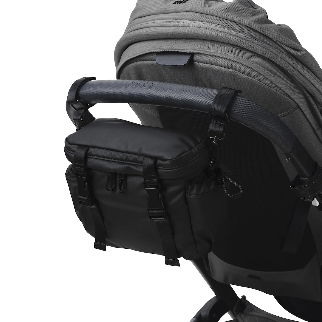 Crafted from lightweight, weatherproof materials, this sleek and practical pram caddy keeps your essentials close and dry – no matter the forecast. With a fully zippered top and quick-close buckles, you can secure everything in seconds (even one-handed). The insulated side pockets are perfect for small bottles or snacks, with adjustable toggles to keep them snug and upright.